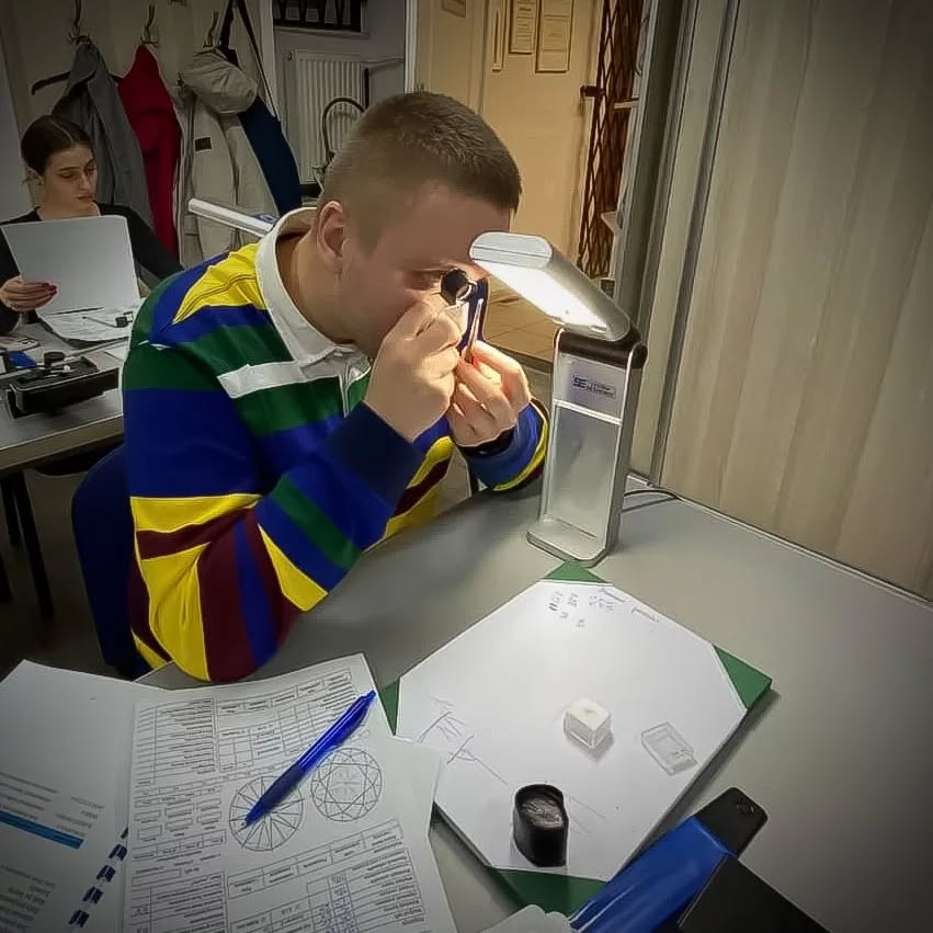 Ukończyłem prestiżowy kurs „Polished Diamond Grader” w Antwerpii, w IGI – jednym z trzech najbardziej renomowanych laboratoriów na świecie zajmujących się oceną kamieni szlachetnych . Oprócz tego cały czas szkolę się w Polsce, w Stowarzyszeniu Rzeczoznawców Jubilerskich SRJ, głównie w zakresie diamentów, ale również innych kamieni szlachetnych, aby stale podnosić swoje kompetencje.