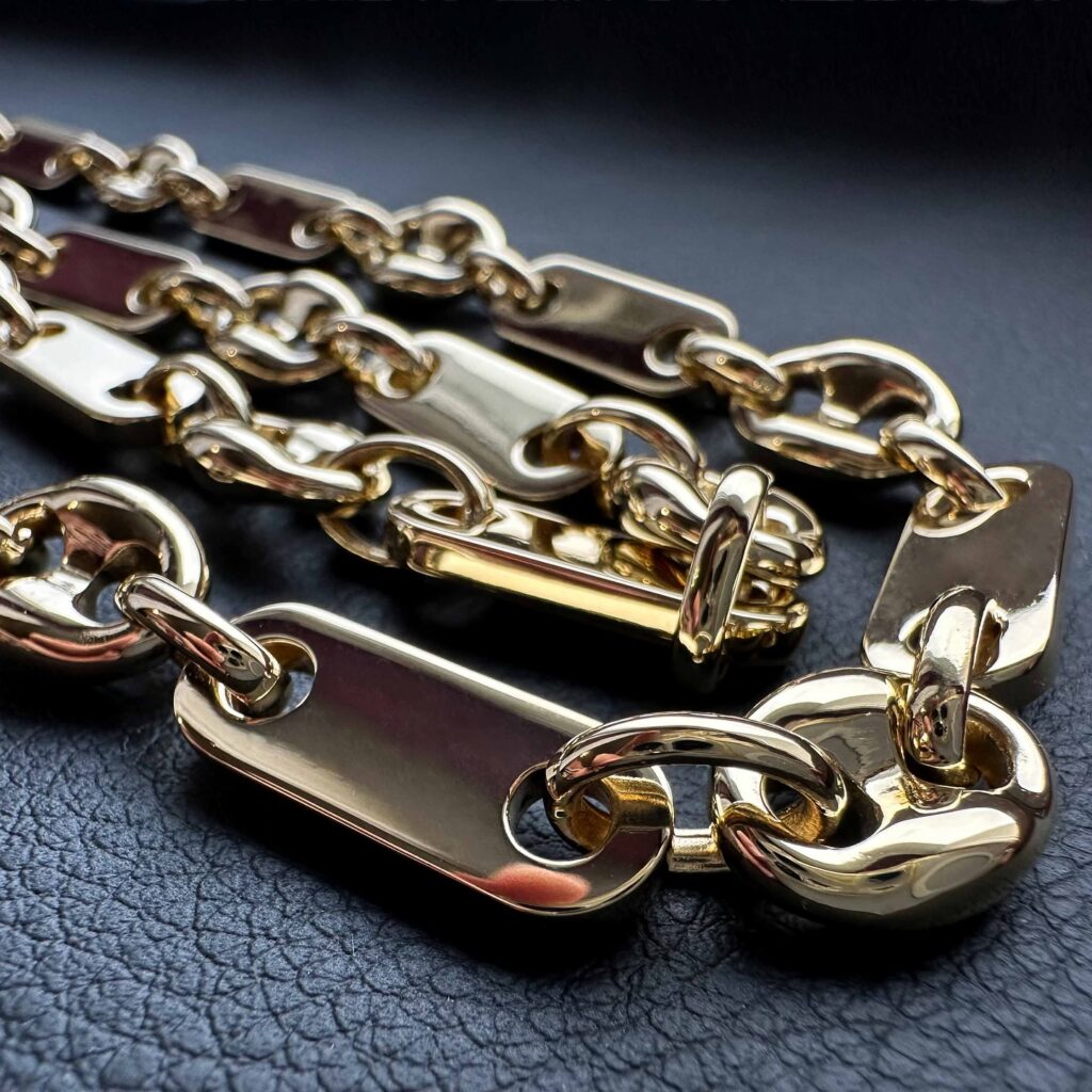 Tworzymy zarówno klasyczne wyroby, takie jak pierścionki zaręczynowe czy obrączki ślubne, jak i bardziej ekstrawaganckie projekty – na przykład łańcuchy w splocie miami cuban z tysiącami małych diamentów . Fascynują nas również nietypowe mechanizmy i innowacyjne rozwiązania, które wprowadzają niebanalne funkcje do naszych wyrobów, łącząc tradycyjne rzemiosło z nowoczesnymi technikami.