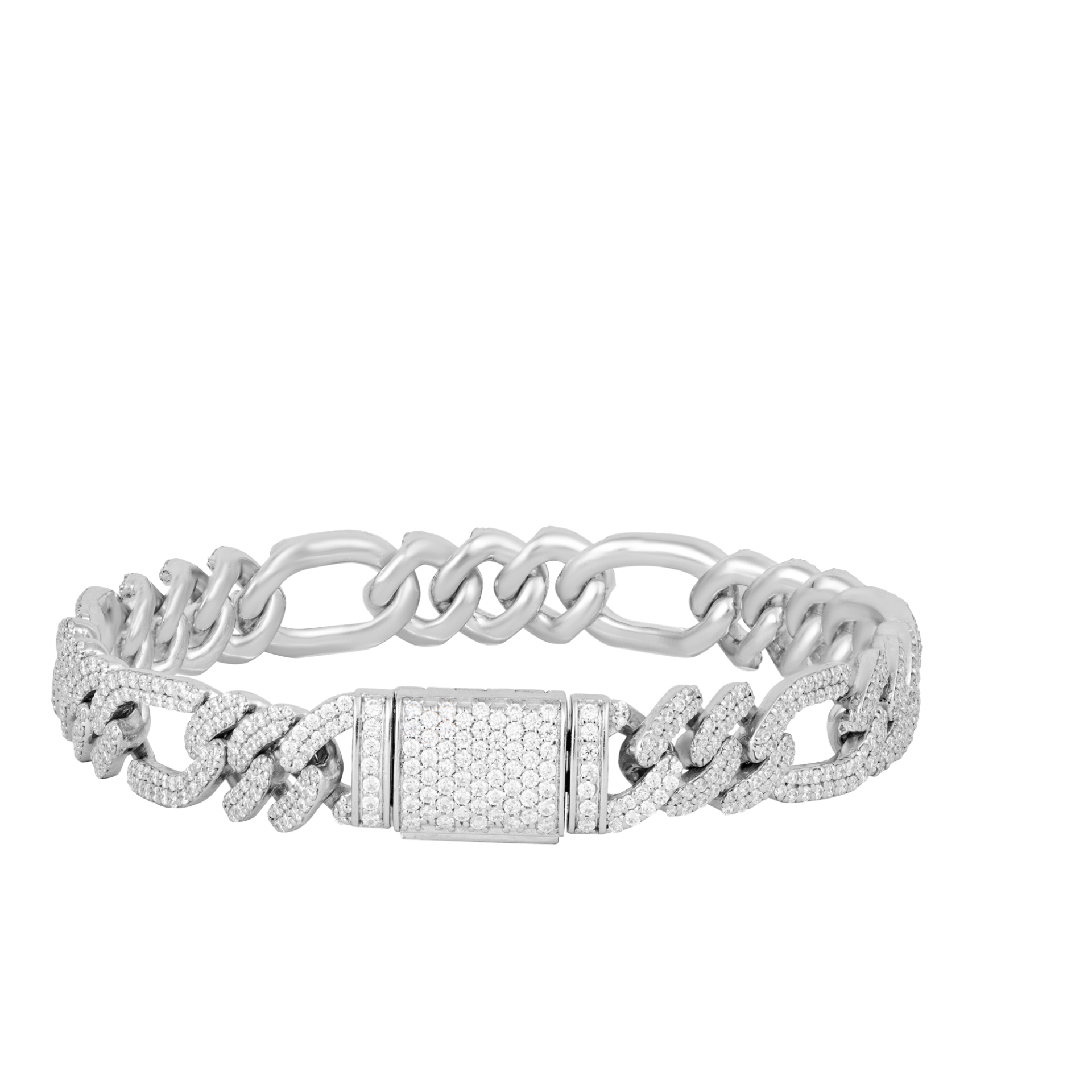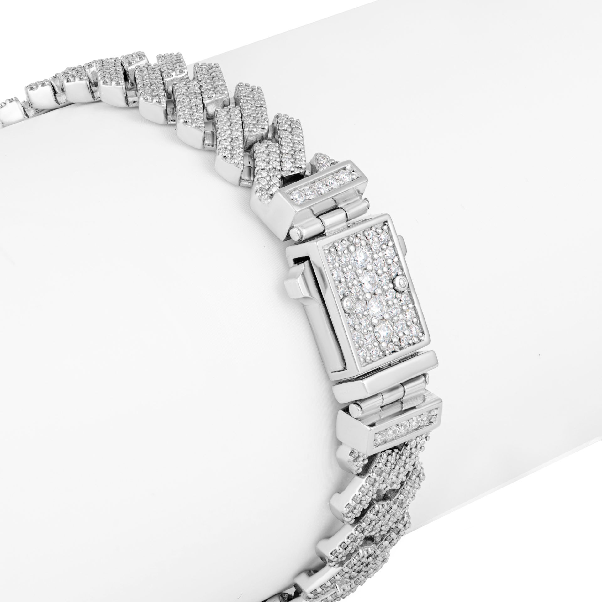 Ta efektowna bransoleta stanowi idealne połączenie streetwearowego charakteru i ekskluzywnejelegancji. Wykonana z wysokiej jakości srebra, została misternie ozdobiona diamentami, które dodają jej niepowtarzalnego blasku. Mocne, masywne ogniwa podkreślają styl i odwagę osoby, która ją nosi, a solidne zapięcie zapewnia komfort oraz bezpieczeństwo użytkowania.Precyzyjnie osadzone kamienie sprawiają, że bransoleta staje się nie tylko biżuterią, ale też wyrazistym symbolem niezależności i pewności siebie. Idealnie sprawdza się jako główny akcent w codziennych stylizacjach streetwearowych, jak i na specjalne okazje. Ten model to propozycja dla miłośników nowoczesnych dodatków, którzy lubią wyróżniać się w tłumie oraz cenią luksusowe wykończenie biżuterii.