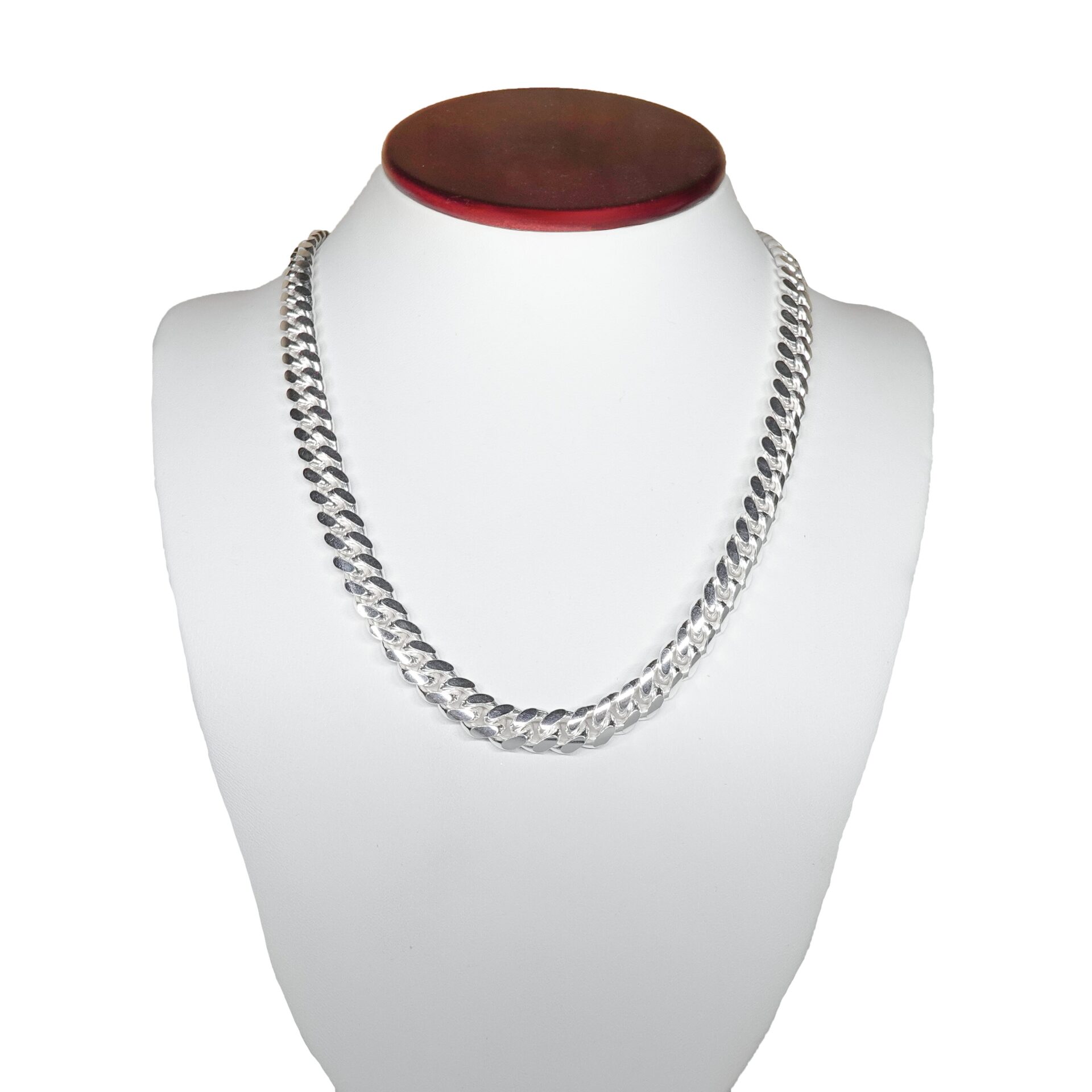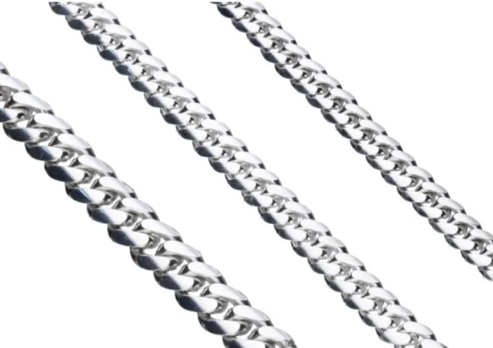 Łańcuch Cuban ze srebra próby 0.925. Duży zakres szerokości łańcucha oraz pełna dowolność w długości. Jeżeli wyrób waży powyżej 5 gram posiada cechę probierczą wystawioną przez Urząd Probierczy, potwierdzającą wysoką jakość użytych materiałów
