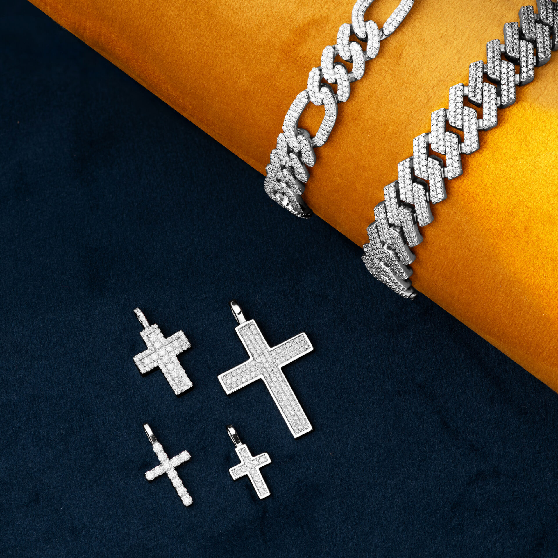 zawieszka krzyż z ramką- srebro 0.925, diamenty laboratoryjne