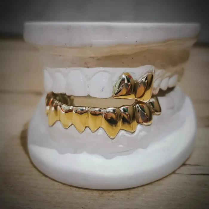 Srebrne grillz to efektowne nakładki na zęby, które dodają charakteru i blasku każdej stylizacji. Doskonały wybór dla osób ceniących modę inspirowaną kulturą hip-hop i miejskim stylem.