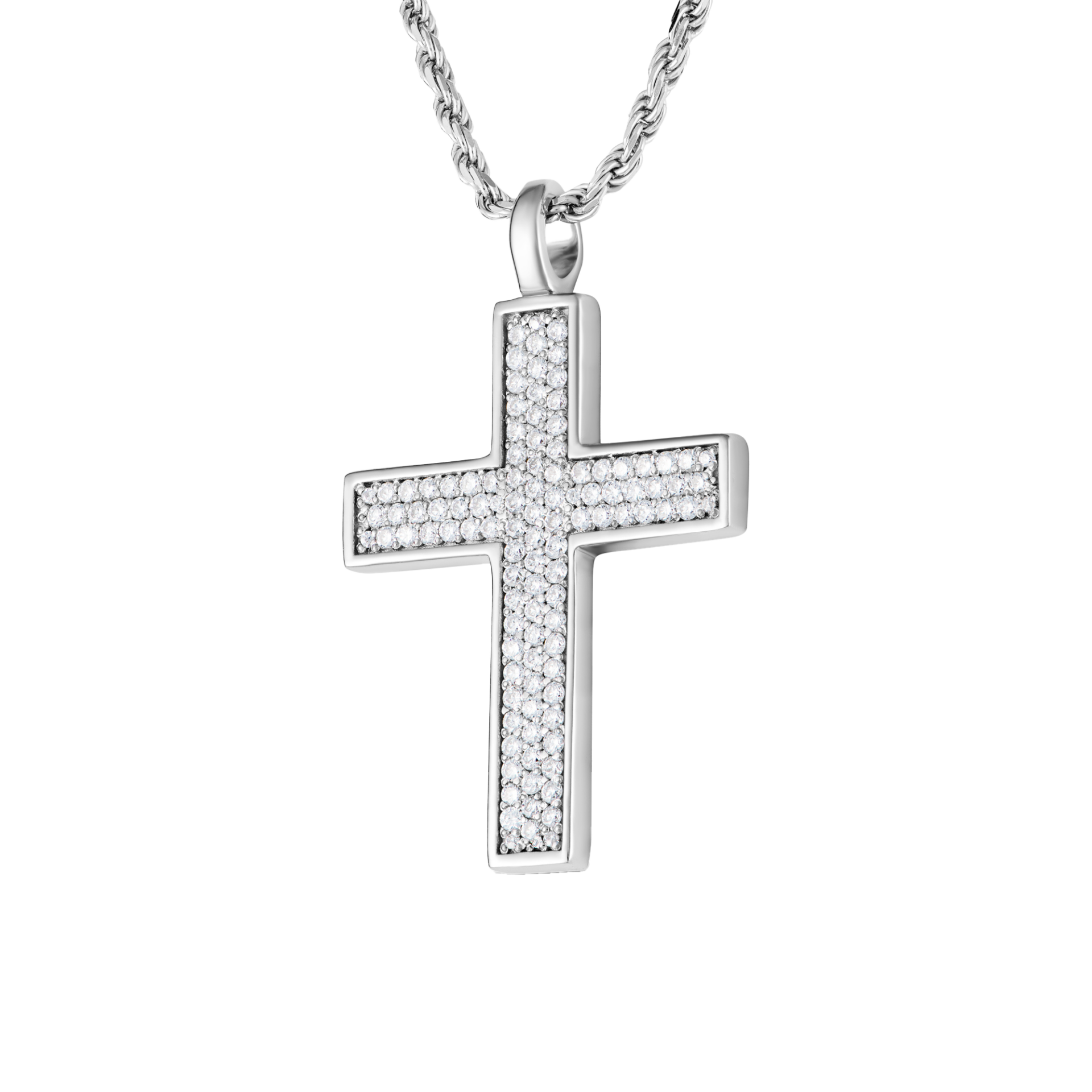Nowoczesny krzyżyk wysadzany diamentami to wyrazisty dodatek dla miłośników miejskiego stylu. Połyskujące kamienie podkreślają designerski charakter biżuterii, czyniąc ją idealnym wyborem do codziennych streetwearowych stylizacji. To połączenie wyrazistej formy i elegancji – dodatek, który rzuca się w oczy.